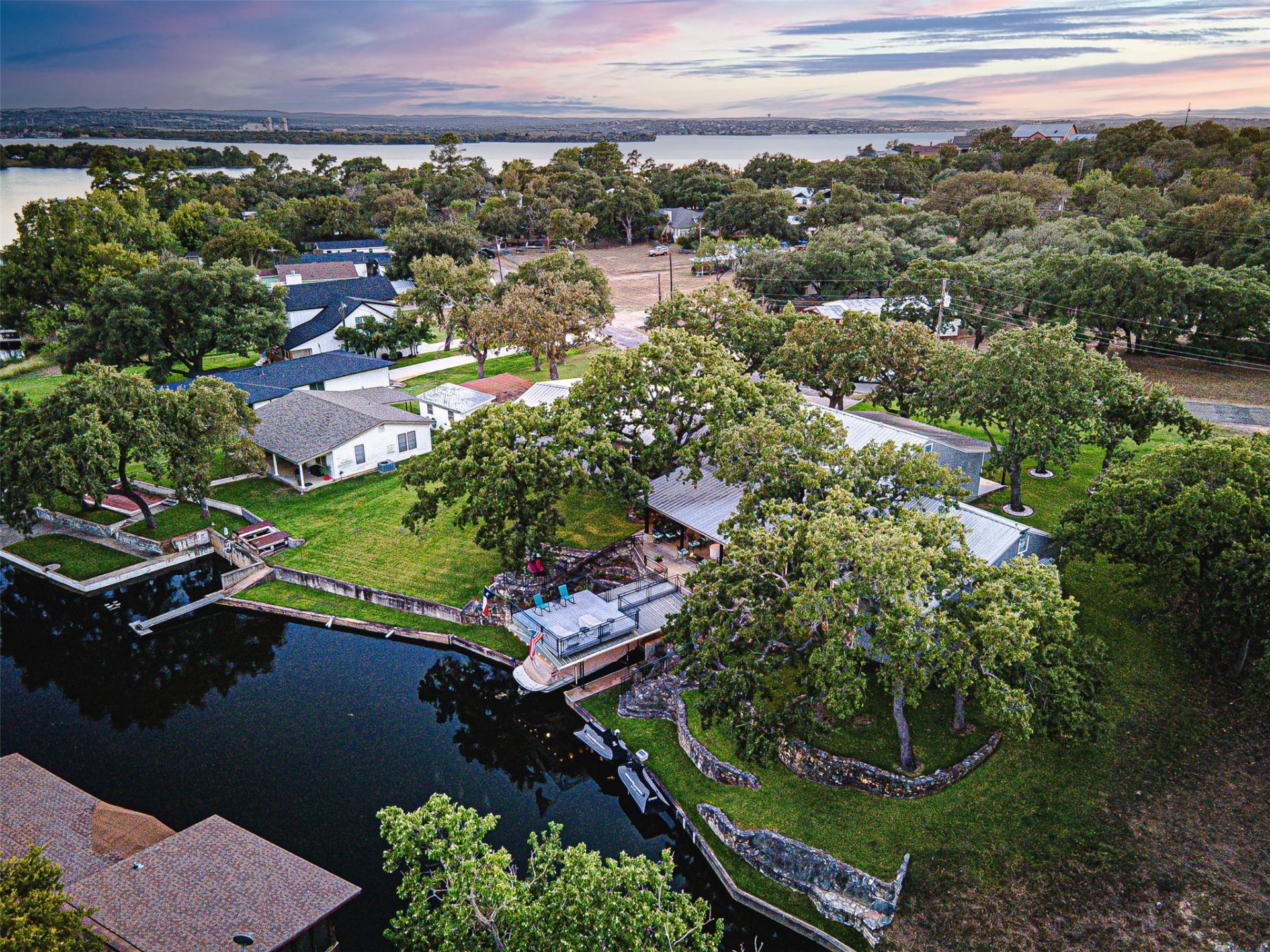 Granite Shoals waterfront gem! Short term rental allowed with city permit. This sprawling home sits on a double lot with 126 feet of waterfront. Beautifully updated three bedroom, three bathroom home with a private primary suite. Office with exterior entry. Open kitchen, butler's pantry, breakfast bar, formal dining facing water frontage. Beautifully tiered landscape, deck over boat dock, 7000 pound boat lift with boosted cables and motor, 5 car garage great for storing boat and jet ski trailers, great location very easy to access from Valley View Lane. This entire property has been meticulously maintained and had extensive upgrades including spray foam insulation, updated kitchen and bathrooms, atrium connecting main house to garages, extra half bath in garage, hot tub, beautiful outdoor living spaces, contact agent for full list of features and upgrades.