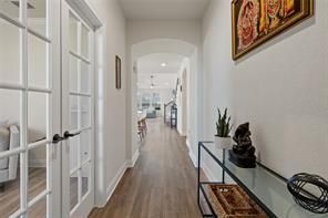 Welcome to your dream home in Santa Rita Ranch! Built in 2023, this upgraded contemporary home sits on a quiet street with peaceful pond views and no rear neighbors for added privacy.Inside, youll find a grand entry, a private office with French doors, and a second workspace or planning center. The chefs kitchen features quartz countertops and opens to a spacious living area with vaulted ceilings?perfect for entertaining.Enjoy a luxurious primary suite with bay windows, dual vanities, walk-in shower, and two large closets. The home also includes a game room with built-in speakers, bidets in every bathroom, a security system, water softener, and EV charger.Step outside to a backyard ready for gatherings with a built-in gas line for grilling.