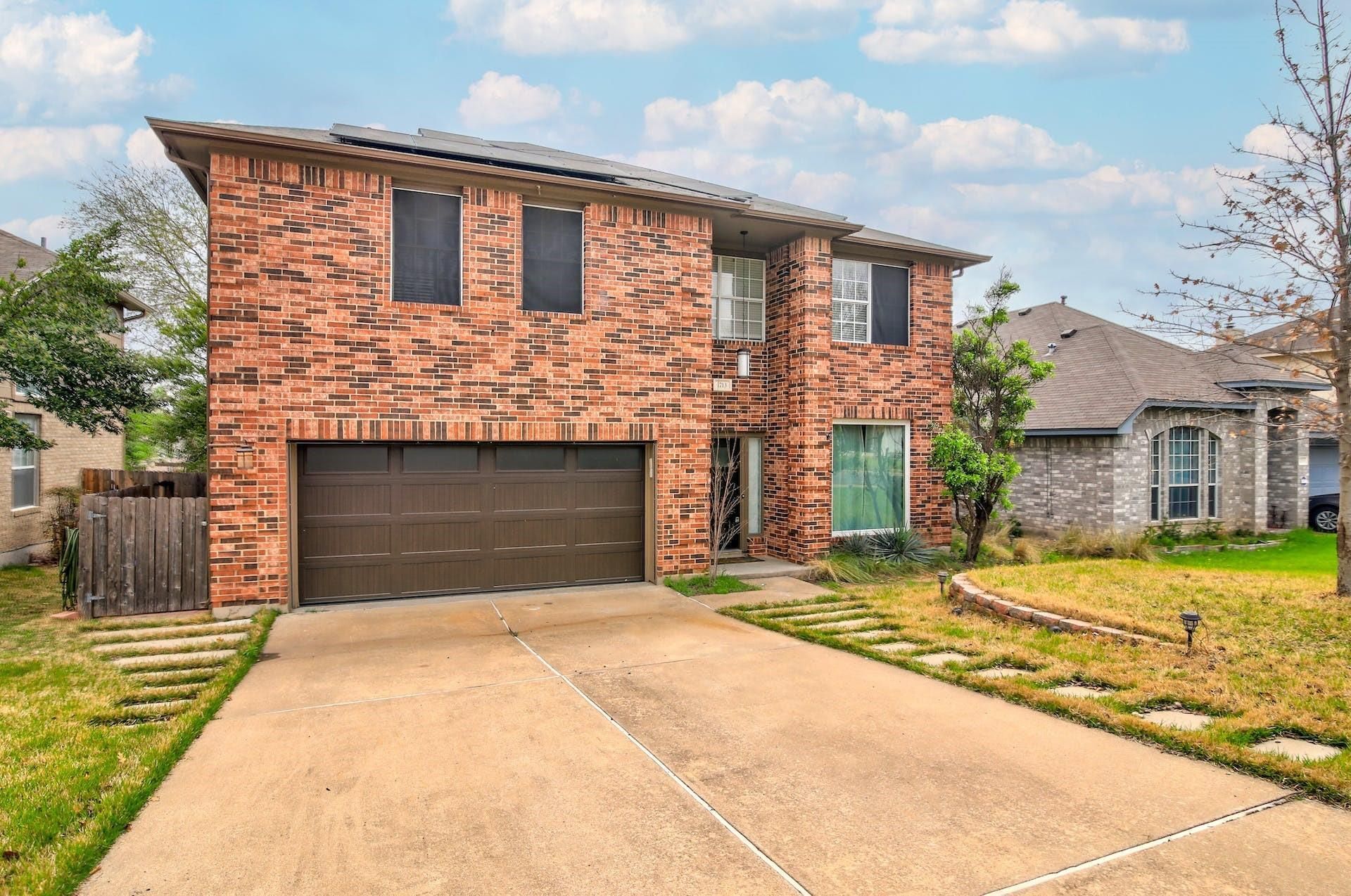 This thoughtfully designed home features stylish finishes throughout and an entertainer-friendly layout centered around a spacious kitchen with a large island and ample prep space. Two living areas offer flexibility for relaxing, working, or hosting guests.Enjoy outdoor living year-round on the covered back porch with vaulted ceiling and ceiling fans?an ideal spot to unwind or gather with friends. The oversized primary suite provides a private retreat, complete with dual vanities, a soaking tub, and separate shower.Wood and tile flooring throughout the main areas add both durability and warmth. Solar panels offer improved energy efficiency and help offset utility costs.Conveniently located just minutes from Dell HQ and Kalahari, with easy access to major employers including Samsung, Apple, IBM, and Amazon, as well as shopping, dining, and entertainment at The Domain. Zoned to Round Rock ISD schools.