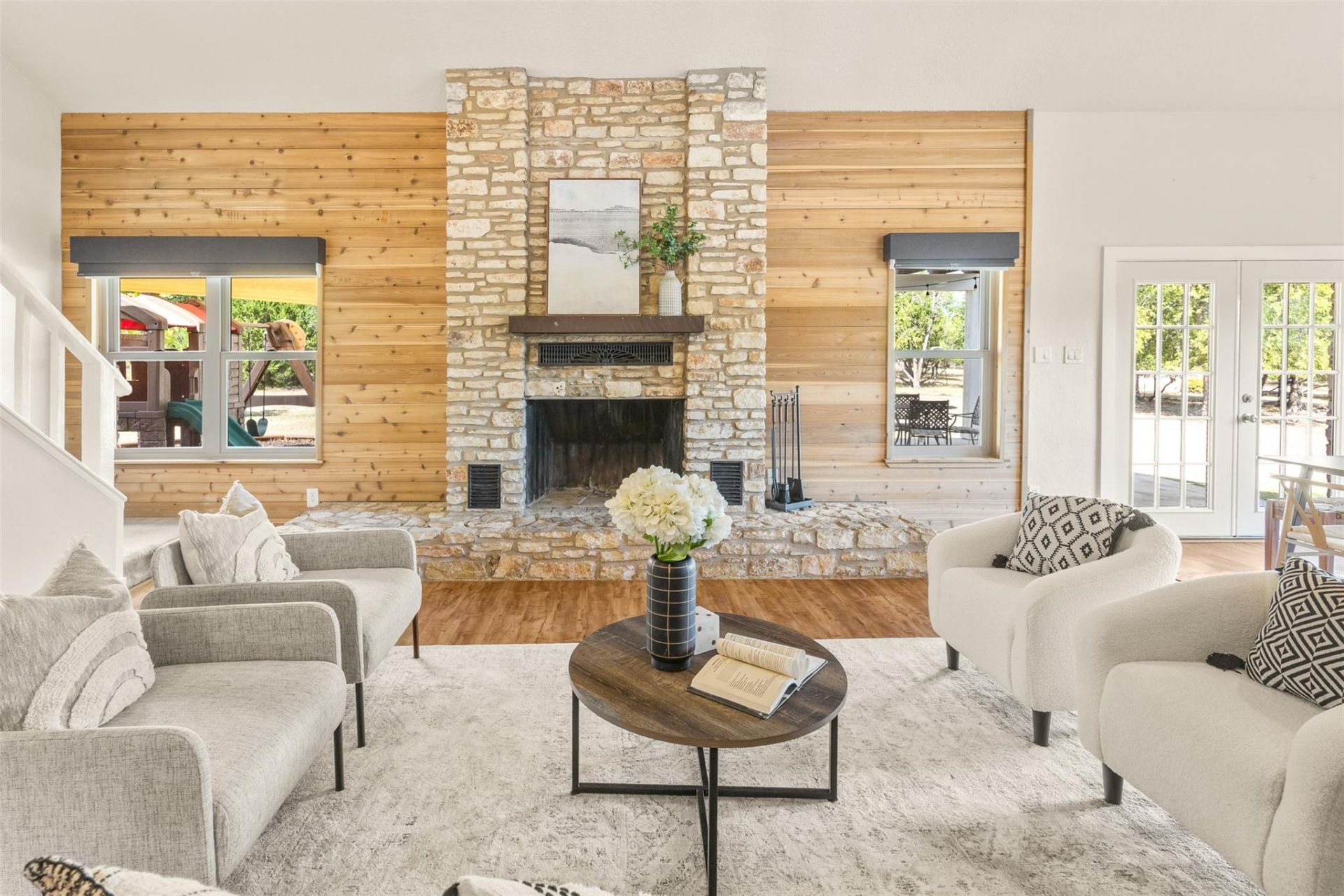 Acreage updated home in desirable Brushy Bend Park. 1.2 acre treed lot. Beautifully appointed kitchen with recent white cabinets, granite counters, glass tile backsplash, and stainless appliances. Double oven. Fridge and washer and dryer convey. Large bedrooms with walk in closets. Spacious bonus room that could be a 4th bedroom or game room and office. Walk in closet. Updated bathrooms with granite counters, white cabinets, and tiled showers. Upgrades include recent roof, paint, vinyl insulated windows, many more. Large covered patio and shed for storage. Room for a swimming pool, photo is an AI rendering.Highly rated Leander ISD. Low tax rate.