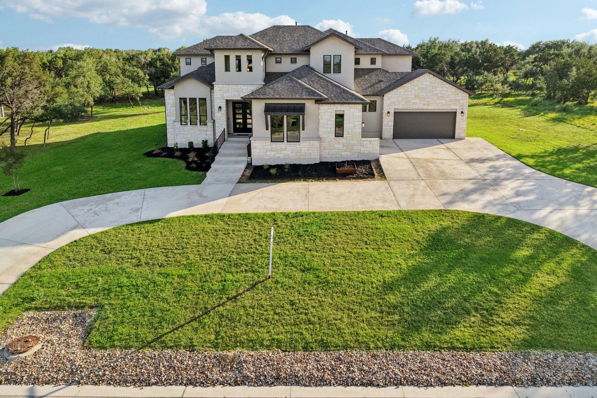 Showcasing over $340k in thoughtful, recent upgrades, this barely lived-in Drees home offers refined living on a private 1.086-acre lot in Northgate Ranch. The exceptional 5,101-square-foot layout features six bedrooms and five-and-a-half bathrooms, highlighted by a true multi-generational mother-in-law suite complete with a kitchenette, living area, full bathroom, and separate backyard access. A stunning circular driveway leads to the impressive four-car garage, equipped with two separate entrances and pristine epoxy floors.Inside, crisp white oak wood floors and striking wood beam accents frame an expansive open-concept living space. The chef's kitchen centers around an extensive island with premium quartz countertops, supported by a convenient wet bar and butler's pantry for effortless entertaining. Retreat to the main-level primary suite, a private sanctuary boasting a luxurious bathroom with dual vanities, a double rainwater showerhead, and a soaking garden tub. The thoughtfully redesigned primary closet includes abundant built-in cabinetry and direct access to the utility room.Upstairs, a dedicated media room features its own wet bar, and the versatile game room opens to a covered balcony, providing unobstructed, pristine hill country views with absolutely zero rooftops in sight. The expansive backyard is an entertainer's dream, featuring an outdoor kitchen, raised garden beds, and ample room to build a custom pool.Living in Estates at Northgate delivers tranquil, scenic hill country life alongside premier city conveniences. Residents enjoy wide-open skies and large acreage lots while remaining incredibly close to daily necessities, including a new SuperTarget and Costco slated to open just five minutes away in Spring/Summer 2026. This move-in-ready property provides an extraordinary opportunity to bypass the building process and immediately secure a premium estate.