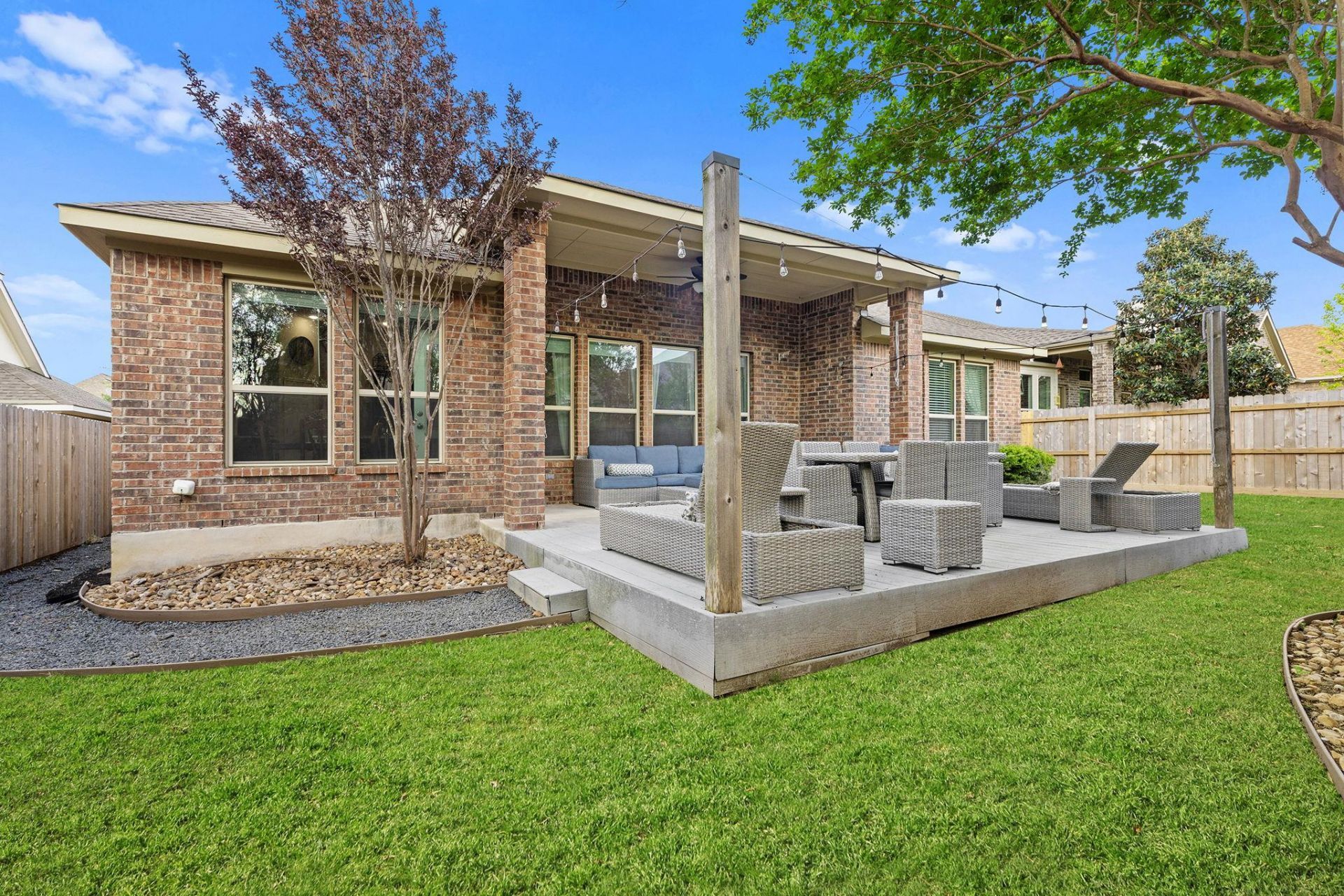 Welcome to the perfect blend of comfort, convenience, and lifestyle in one of the most desirable North Austin suburbs of Leander, TX.This beautifully designed home features 3 spacious bedrooms, 2 full bathrooms, plus a flexible study/office that can easily serve as a 4th bedroom, making it ideal for todays work-from-home lifestyle. The open-concept kitchen and family room create a warm, inviting space centered around a cozy fireplace with custom built-in shelving and cabinetry, perfect for relaxing nights or hosting guests.The heart of the home is the large kitchen island with gas cooking, offering plenty of prep space for entertaining, along with both a formal dining room and a sunny breakfast area for everyday living. Step outside and enjoy true Texas living with covered front and back porches plus an extended deck designed for entertaining, all overlooking a beautifully landscaped, low-maintenance backyard. Additional features include gutters, a full sprinkler system, and an oversized garage with extra storage space. Located in the thriving Leander area, this home offers easy access to major roadways, top employers, shopping, and dining, while still maintaining a peaceful neighborhood feel. Youll love being within walking distance to the community pool and amenities, making it easy to enjoy an active, connected lifestyle. Zoned to Leander ISD and highly regarded Rouse High School, this home combines top-tier education with everyday convenience. If youre looking for a home that offers space, functionality, and a vibrant North Austin suburban lifestyle, this one checks every box.