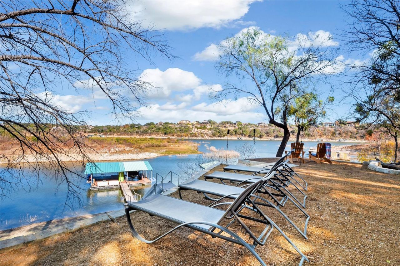Peaceful waterfront retreat on the Pedernales River featuring two beautifully designed, light-filled homes? 2 bed/2 bath main residence and a 3 bed/2 bath guest house?offering exceptional flexibility for full-time living, hosting extended family, or generating strong short-term rental income when not in residence. Both homes showcase low-maintenance concrete floors, walls of windows, and an abundance of natural light, creating bright, airy interiors. Updated bathrooms, generously sized bedrooms, and a move-in-ready condition ensure comfort and ease for owners and guests alike.Enjoy approximately 130 feet of waterfront, complete with a private swim area and an impressive entertainment-focused 24 x 10 boat dock with additional covered lounging area, and self-leveling steps to the water?ideal for boating, paddle boarding, kayaking, or floating the river.Outdoor living is exceptional and designed for gathering, with a large stone patio offering multiple lounging zones, a covered outdoor kitchen and a spacious sitting area anchored by a stone wood-burning outdoor fireplace. A stunning 745 square ft covered deck spans the home, delivering sweeping river views and a peaceful, elevated treehouse-like experience your guests will rave about.Evenings are best enjoyed at the central fire pit area between the two homes, enhanced by cafe lighting and washer pits?perfect for relaxing after a day on the water. Additional highlights include ample parking, a 2-car garage, and thoughtful system upgrades including new roofs on both homes (September 2024), tankless water heaters and water softeners in both residences, and a reverse osmosis system in the main house.A rare opportunity to own a private, turn-key riverfront compound in the highly desirable Lake Travis / Pedernales River corridor, offering an unmatched blend of lifestyle, privacy, and income potential.
