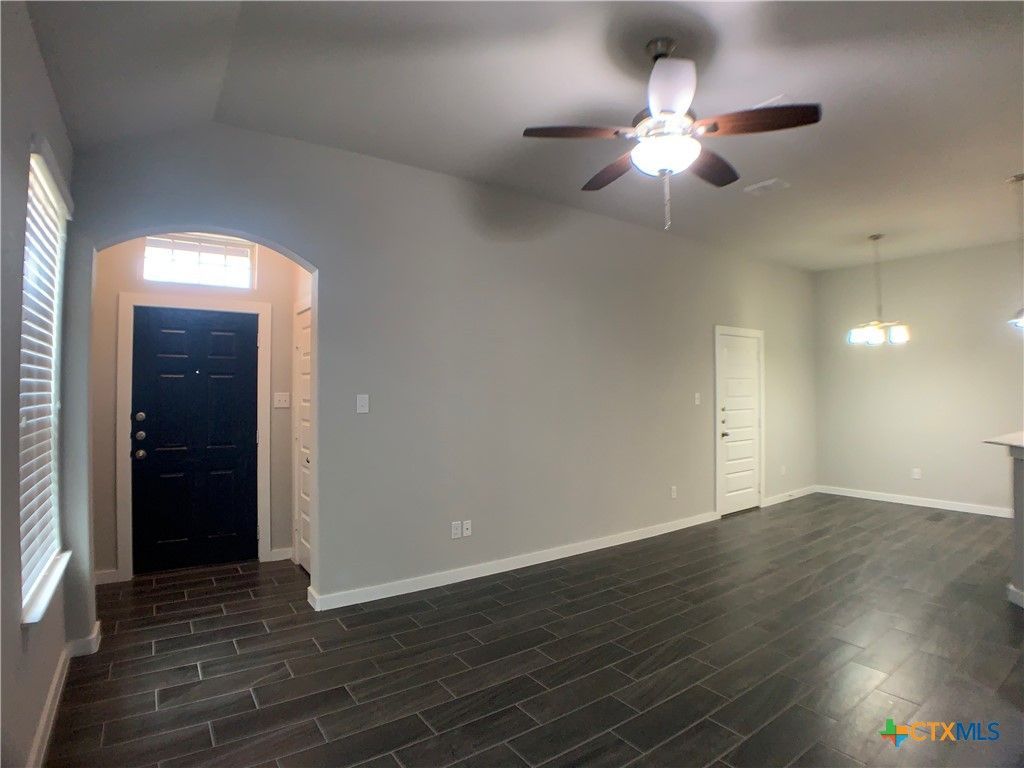 1.5 miles to Creekside Area Shopping / Entertainment / Restaurants. 4.5 miles to Gruene. 4.8 miles to Downtown New Braunfels. F;ooring is a mix of carpet& wood like tile. Kitchen Includes: fridge ( ice maker does not work), dishwasher, built in microwave, stove/oven range electric, grante counter tops, breakfast bar, pantry, & recessed lighting. Other Features: ceiling fans, high ceilings, washer / dryer connections inside, walk in closet, walk in shower, double vanities, shower/tub combo, sprinkler system, garage door opener, covered back patio, & a fenced in yard. 2 pets ok , 50 lb max.
